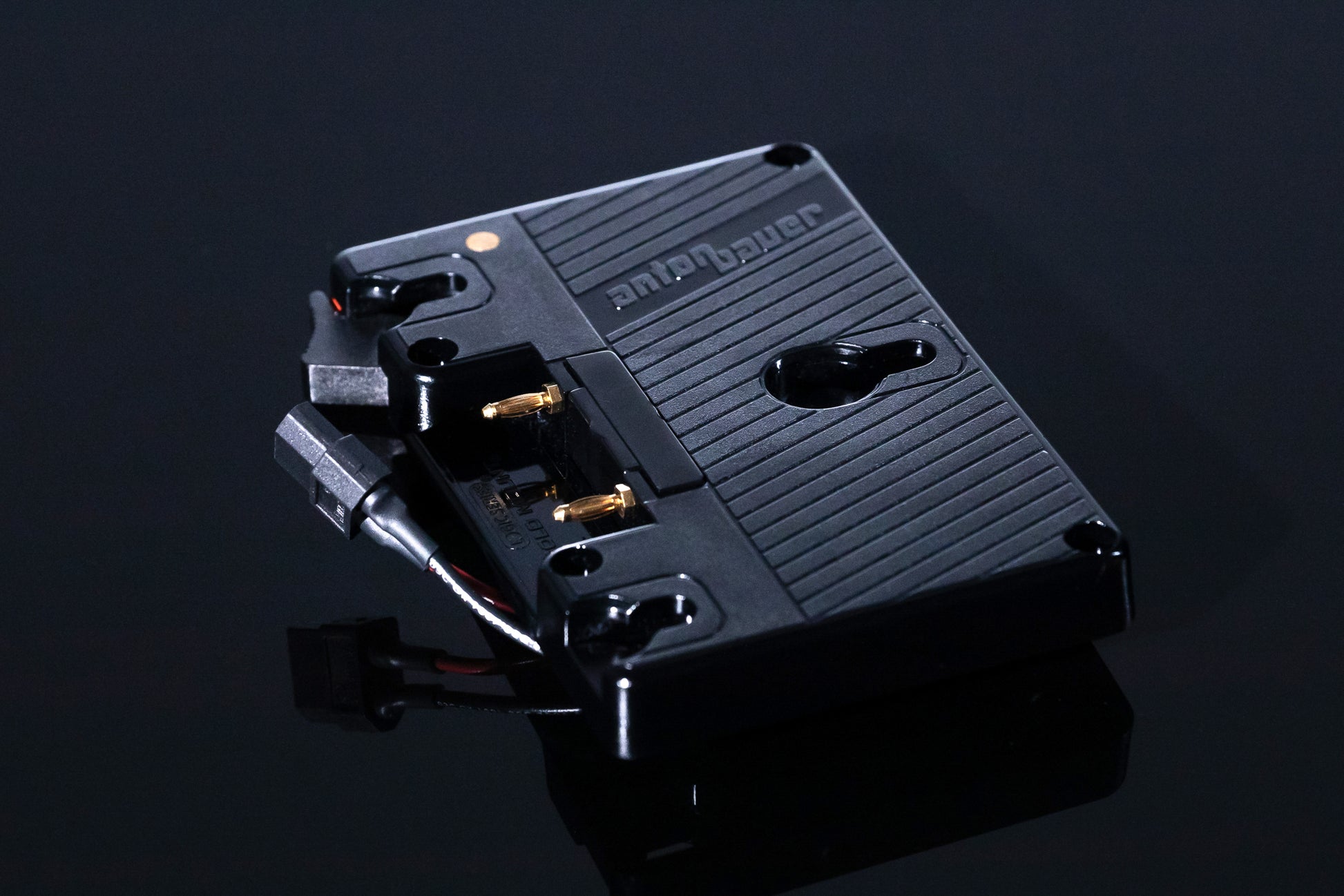 These Anton Bauer Gold Mount Plates are terminated with a quick-release connector to be able to plug into the Apex Battery Rack 1.