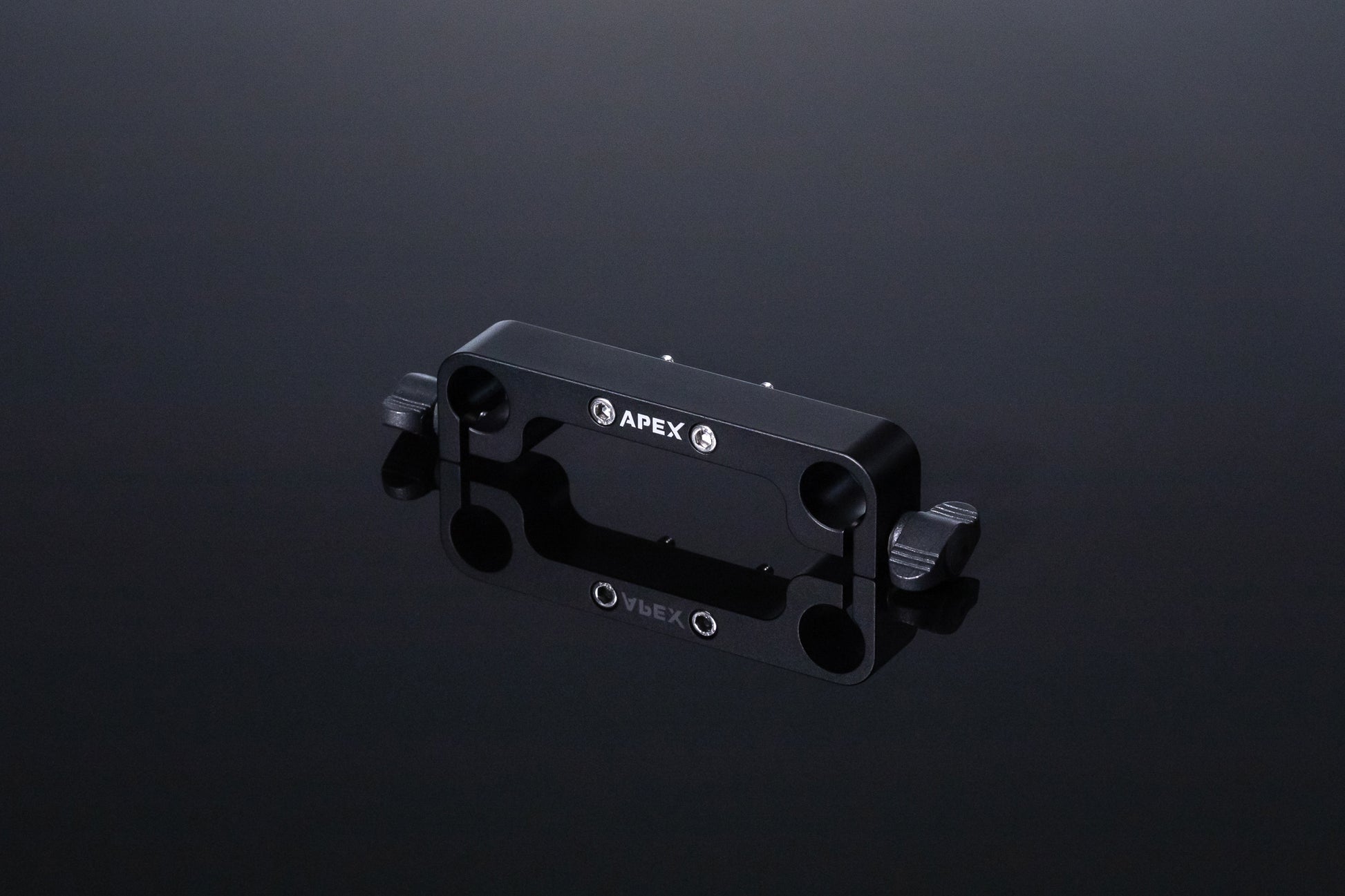The Monitor Yoke Rod Clamp works exclusively with the Gen V Battery Rack. This screws on to the front of the Gen V Battery Rack and allows the user to slide on the Monitor Yoke 1 to achieve a completely coplanar monitor and battery configuration. It has two captive #8-32 hex bolts to fasten it to the Gen V Battery Rack, as well as Kipp Wing Screws on either side to tighten the rods once they are inserted. The spacing of the 5/8" rods is the standard PRO spacing of 3.5" center-to-center.